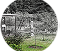 Die Wiese hinterm Haus von Wohnung 1 aus.